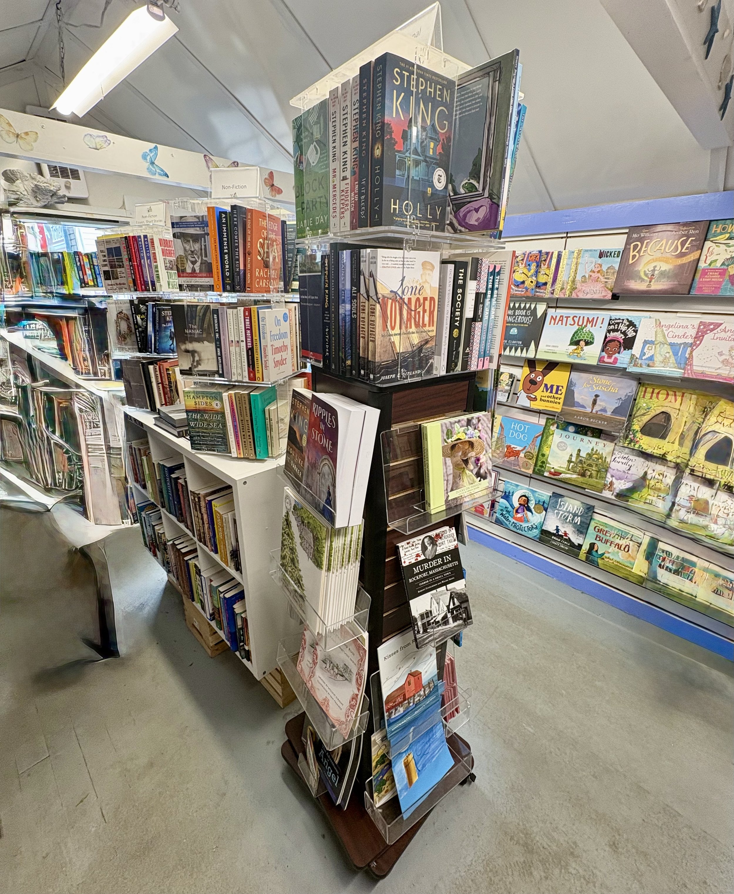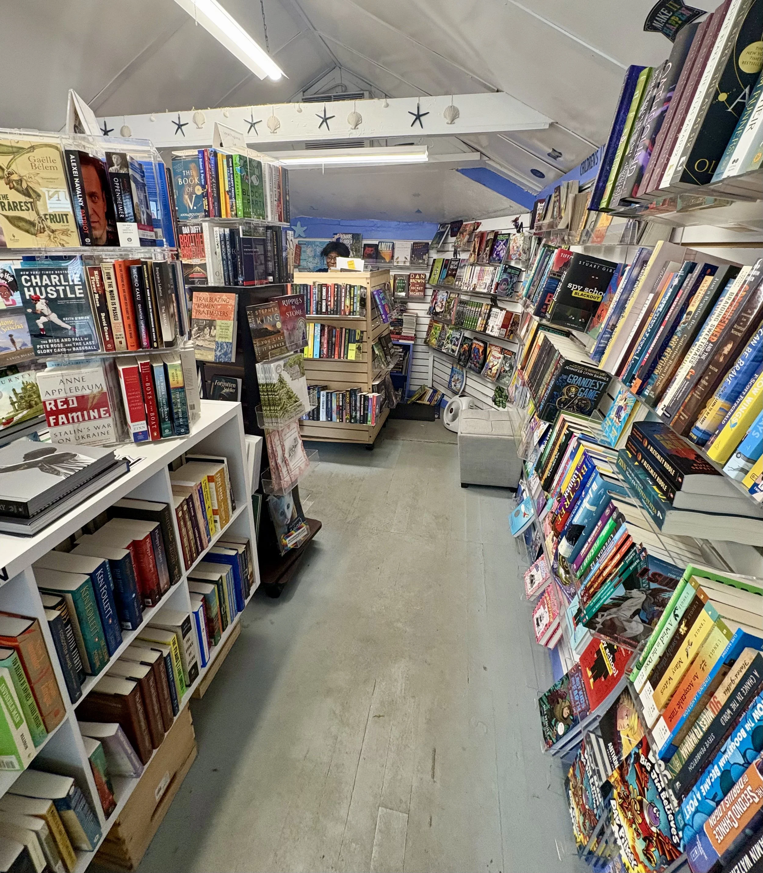 Susie’s Stories is the latest bookshop to occupy a prominent location on Bearskin Neck in Rockport MA. It is a bright and cheerful space with nautical designs, reflecting the nearby harbor. There is a rack of locally themed books, and a good amount of children's books as well; these include several books written by Susie herself. She happily signed one of her books and personalized it to our grandson. There are also recent national publications and best sellers. The shop is a light and airy space in which to take respite from the sometimes busy Bearskin Neck. The owner is both welcoming and knowledgeable. This bookshop is highly recommended.